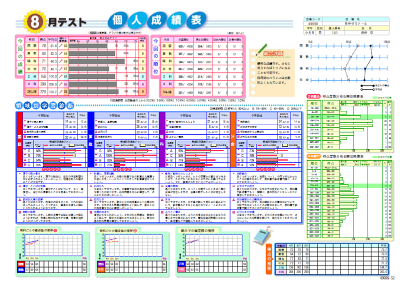 自宅受験でも、教室受験と同じ成績カルテをお渡しします。